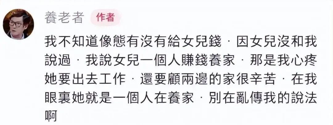 郭碧婷父亲在评论区回复网友时提及女儿,称赞其孝顺体贴,同时坦言心疼 —— 如今家中大小事务皆由郭碧婷独力支撑,日常开支与孩子教育费用均需其承担,个人积蓄多用于维系家庭。